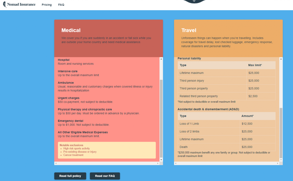 ※Nomad InsuranceのサイトをスクロールしたりFAQから詳しい情報を得られます。